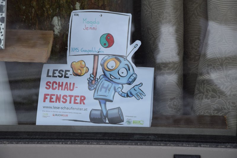 Durch eine Freundin sind wir auf dieses Buch aufmerksam geworden. Das Buch zu lesen hat uns sehr gut gefallen, weil es für unser Lesealter passend ist. Neugierige Jugendliche sollten durch die Gestaltung unseres Schaufenster motiviert werden, dieses Buch auch zu lesen.- Projektleitung: