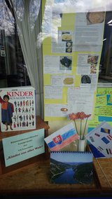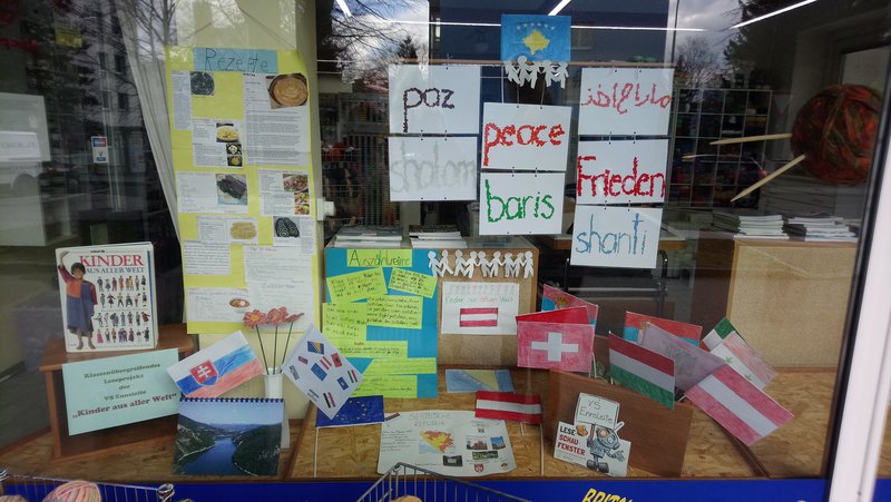 Das Buch wurde in den Klassen gelesen und anschließend Beiträge - wie Rezepte, Reime, Plakate, Flaggen, Friedenswünsche - zu diesem Thema ausgearbeitet. In unsere Schule gehen Kinder aus den verschiedensten Ländern, jeder durfte etwas aus seinem Land mitbringen, vorstellen und gestalten.