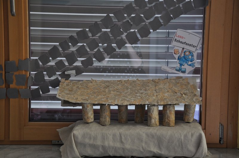 Die Klasse 3S der Praxisschule beschäftigte sich in einem 3tägigen Projket mit der Zeit der Römer. Kurzreferate über Themen wie Kleidung, Essen und Trinken, Hygiene, Gladiatoren, Wagenrennen usw. wurden präsentiert und die Hauptfiguren des Buches "Mord in Carnuntum" nachgestellt und fotografisch festgehalten. Der Limes, eine römische Villa, die einfache Hütte und die römsichen Münzen versuchte die Klasse nachzubauen und im Leseschaufenster in Szene zu setzen.- Projektleitung: