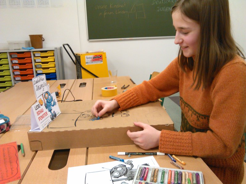 Wie die Autorin haben wir auch Texte über unsere Kindheit in fernen Ländern geschrieben. Wir haben auch viel Zeit in die Gestaltung investiert. Dabei haben wir viel gesprochen und zusammengearbeitet. Am 15.Februar 2018 haben wir das Schaufenster im Zentrum Kem(A)rt aufgebaut. Es zeigt, dass Freundschaft und Familie für alle Kinder der Welt gleich wichtig sind. Am 16. Februar 2018 wurde es feierlich in Anwesenheit unserer Frau Bürgermeisterin Juliana Günther eröffnet.- Projektleitung: