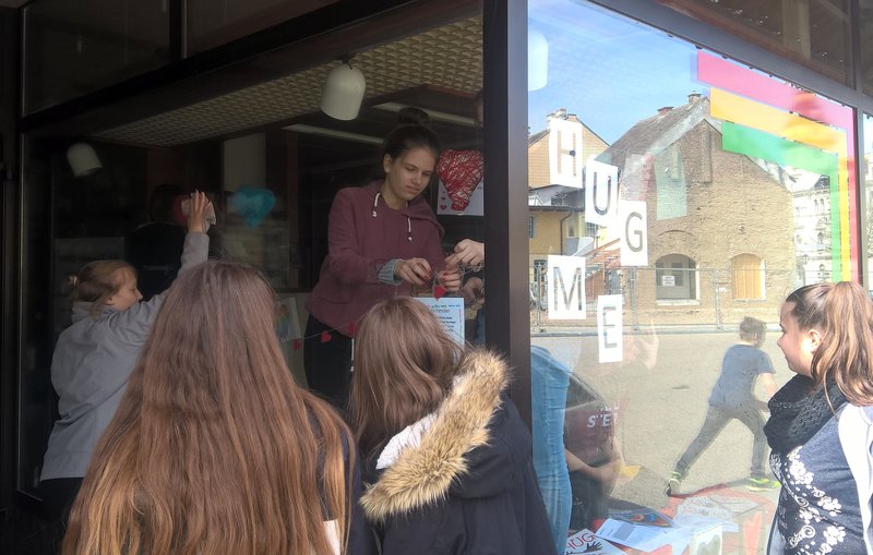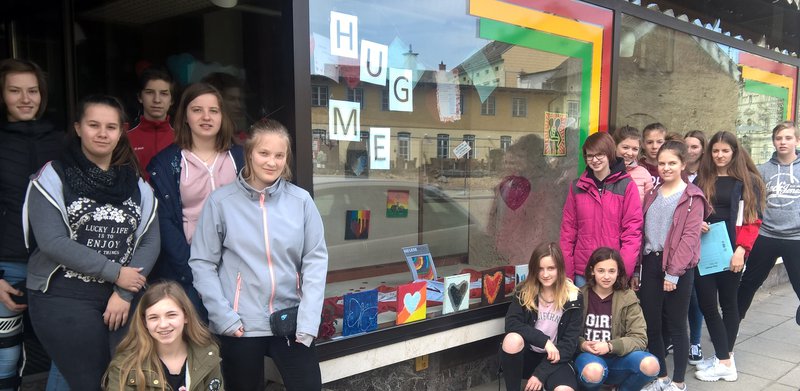 Lese Schau Fenster Im Rahmen des Wahlpflichtfachs Atelier haben sich Schüler der 4. Klassen der Musik-NMS Laa II mit dem Buch „HUG ME“ aus der Crossover Serie des Buchklubs beschäftigt. Es entstanden Liebesgedichte, Gefühle wurden in kreativen Herzbildern dargestellt und es gab Begegnungen mit berühmten Liebespaaren der Weltgeschichte.- Projektleitung: