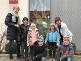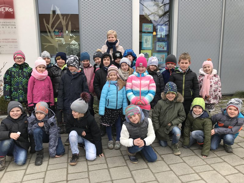 Schulkinder mit der Lehrerin und der Leseförderin Frau Cerny