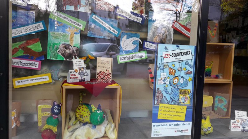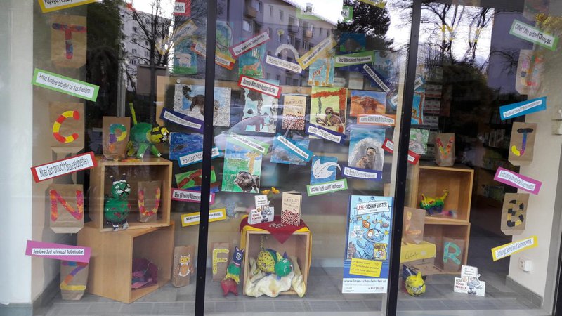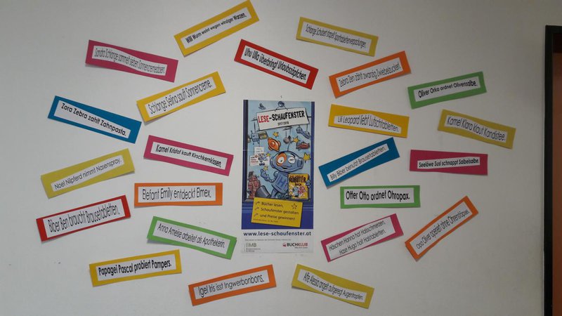 Rezept für ein gelungenes ABC-Darium: Man nehme unzählige motivierte SchülerInnen der 3e- u. 4b-Klasse, eine große Portion Einfallsreichtum, zwei Prisen Humor, kindliche Neugierde, 26 Buchstaben des Alphabets, eine Hand voll Fantasietiere u. 1 kg Medikamentenbeipackzettel, mische aus diesem großen Haufen bunter Ideen die Besten zusammen u. teile sie auf viele kleine Schaufensterportionen auf. „Schau!“, ruft die Schaufensteräskulapnatter. „Hier gibt es viele lustige Sprüche in der Auslage, von Kindern ausgedacht u. selbst Gebasteltes. Ist das nicht großartig?“ Die SchülerInnen haben sich in einem dreimonatigen Arbeitsprozess mit dem Buch auseinandergesetzt. In verschiedenen Arbeitsschritten haben sie Rätsel gelöst, zum ABC neue Tierarten „entdeckt“, Beipackzettel kreativ verarbeitet, Katzen gebastelt etc. Die Kinder waren dabei gar nicht mehr zu bremsen u. was am Anfang fast unmöglich erschien, machte zunehmend mehr Spaß u. so wurden u.a. mehr als 40 Reime geschrieben.