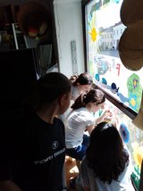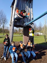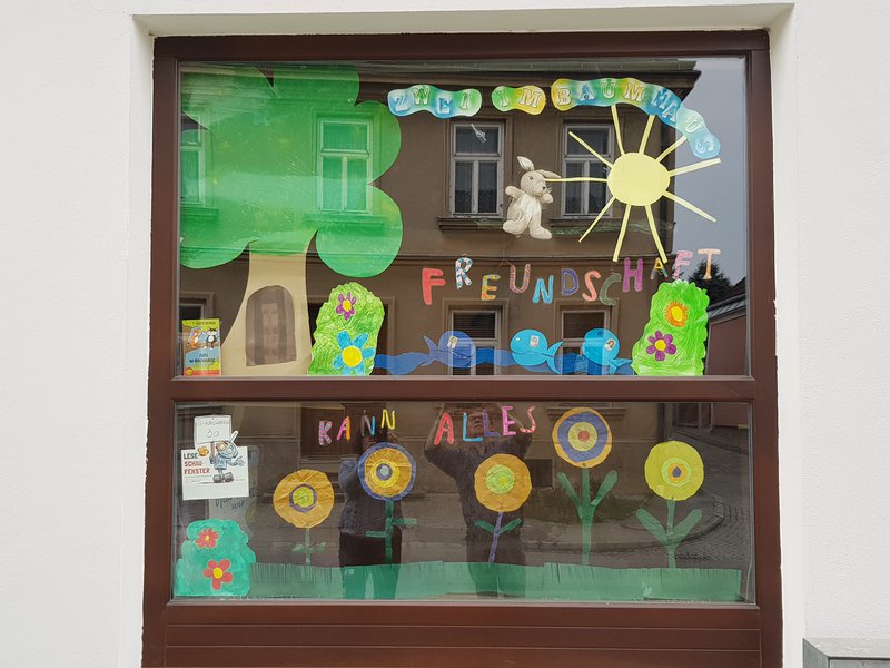 Als unsere Frau Lehrerin erzählte, dass sie mit uns gerne an einem Lesewettbewerb teilnehmen möchte, war mein erster Gedanke: "Lesen?! Nein, danke!" Doch als sie meinte, es ginge dabei nicht darum, wie gut man im Lesen ist und wir das Buch durchgeblättert hatten (nette Bilder, Thema Freundschaft), konnte sie uns zur Teilnahme ermutigen. Dass wir das Buch zum Teil im Baumhaus auf dem Spielplatz lesen durften, versteht sich von selbst. Nachdem wir den Inhalt im Deutschunterricht besprochen hatten, teilten wir uns die Arbeit auf: Die Deko für das Schaufenster wurde in Gruppenarbeit im Werk- und Zeichenunterricht hergestellt und die Kinder aus Großriedenthal gestalteten dann das Schaufenster. Tja, und obwohl ich keine Leseratte bin - dieses Projekt hat wirklich Spaß gemacht! Ein Schüler der 3a- Projektleitung: