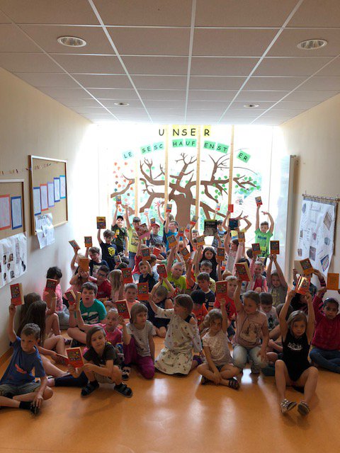 Ein Brief der Giraffe an den Pinguin am Nordpol war der Anfang dieses Abenteuers, das am Beginn der Zeichenstunde vorgelesen wurde. Die Pinguine aus Klopapierrollen sowie eine Giraffe und ein Pelikan schmücken das Schaufenster der Trafik. Auf kleinen Zetteln schrieben die Kinder auf, wie ihnen das Buch gefallen hat.