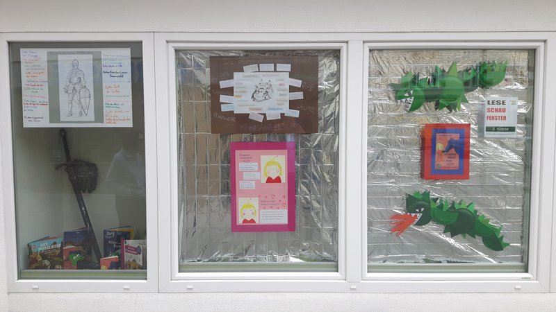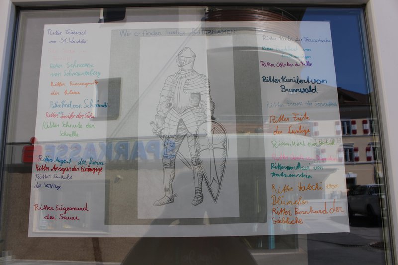 Die Klassenlektüre von "Drachen küsst man nicht" mit all ihren Facetten dominierte für einige Zeit den Unterricht. In Deutsch/Lesen/ Schreiben entstanden Texte und Gedichte über die Ritterzeit, das Mittelalter mit beeindruckenden Anschauungsmaterialien wie zB einem richtigen Schwert war natürlich faszinierendes Thema im Sachunterricht. Plakate und spektakuläre Drachen wurden in Gruppenarbeit in Bildnerischer Erziehung gestaltet.