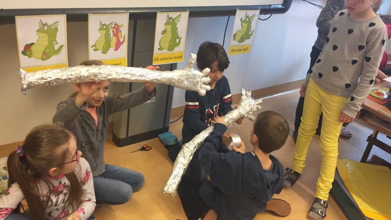 Die Wahl fiel sehr rasch auf das Buch, da es sowohl Mädchen als auch Burschen ansprach. Freundschaft kombiniert mit einem Roboter - das schien für alle reizvoll genug zum Lesen. Gelesen wurde nur in der Schule. die Kinder übten auf die verschiedensten Weisen alle möglichen Lesetechniken: Partnerlesen, Quizfragen formulieren, einzelne Textabschnitt üben-aufnehmen-zusammenschneiden-zum Schluss die gesamte Aufnahme zuhören (das war am beliebtesten-wobei sie unbewusst sowohl genaues als auch betontes Lesen trainierten), Der Bau des Roboters bezog auch die Familien mit ein, da die Kinder alles, was ihrer Meinung zum Bau des Roboters benötigt wurde, zu Hause sammelten und in die Klasse mitbrachten: Alufolie, Schachteln, Rollen, Schraubern, Schläuche, ua. Alle 25 Kinder arbeiteten dann gemeinsam zwei Wochen an diesem Projekt. Die Klasse schaute in dieser Zeit wie ein Altstoffsammelzentrum aus-der Schulwart konnte nicht reinigen. Die Eröffnung war ein großes Fest!!- Projektleitung: