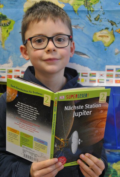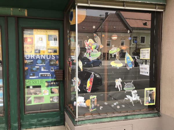 „Endstation Jupiter!“ So lautet der Titel des Sachbuches, das sich unsere 3B Klasse beim Projekt „Leseschaufenster“ ausgesucht hatte. Mit Begeisterung wurde in den letzten Wochen viel gebastelt, gezeichnet und im Zuge des Sachunterrichtes wurden tolle und sehr lehrreiche Referate vorgetragen. Nun ist das Schaufenster am Hauptplatz dekoriert und alle freuen sich auf die Präsentation am Freitag!- Projektleitung: