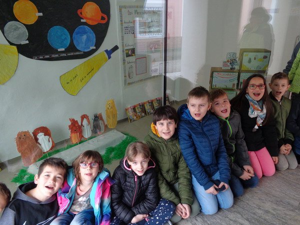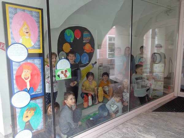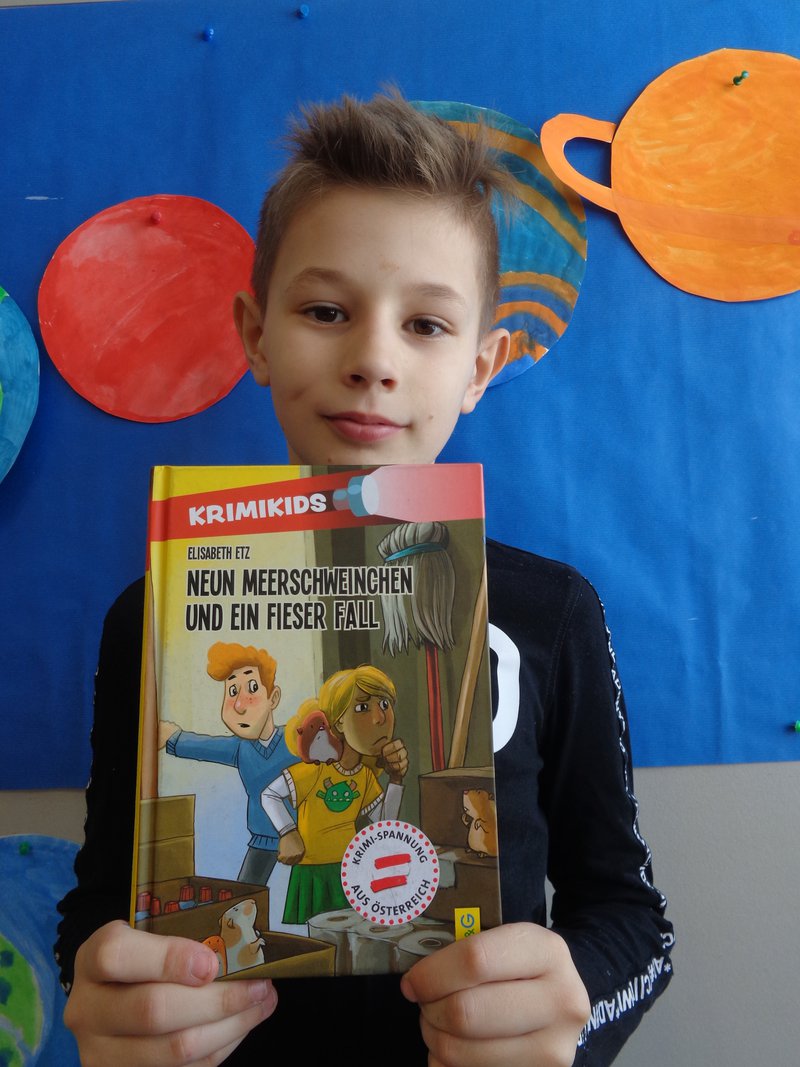 Das Buch "Neun Meerschweinchen und ein fieser Fall" wurde von der Lehrerin als Klassenliteratur gewählt. Im Rahmen des Deutschunterrichtes wurde das Buch von der ersten bis zur letzten Seite mit ungeheuerlichem Interesse gelesen. Zeitgleich wurden im Sachunterricht die Planeten erarbeitet, nach denen die Hauptakteure (neun Meerschweinchen) benannt sind. Tierhaltung und Tierpflege waren weitere SU-Themen. Meerschweinchen und Mäuse wurden zum Werkauftrag und "Portraits" der Hauptpersonen zum Malauftrag. "Peinliche Sätze und Fragen" waren im Deutschunterricht zu suchen und selbst zu erfinden. Das Schaufenster ist eine Collage aller Arbeitsleistungen, die mit großer Begeisterung ausgeführt wurden. Es soll alle Betrachter dazu einladen das Buch zu lesen.- Projektleitung: