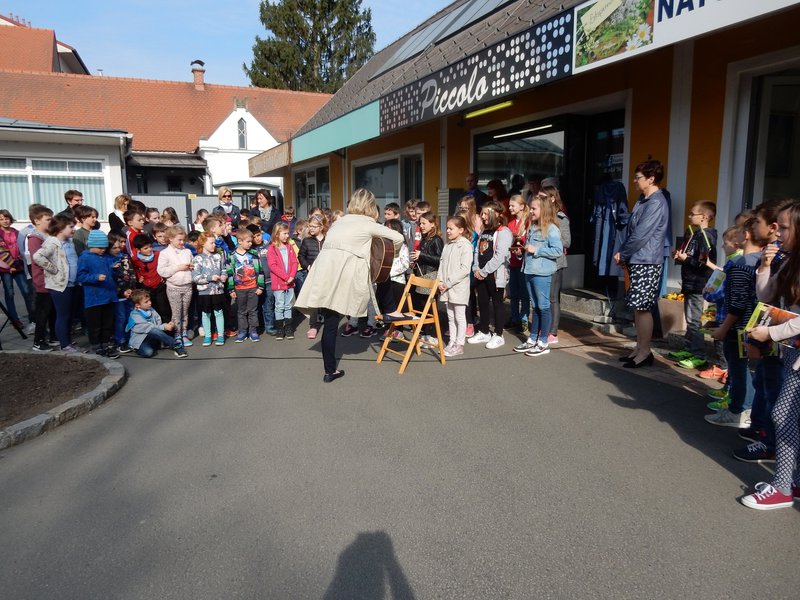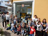 Eine abenteuerliche Reise von fünf Astronautinnen und Astronauten und einem Kaninchen zum Jupiter und seinen vier größten Monden, ist der Inhalt des Buches, das die 2a Klasse in Rahmen des Projekts Leseschaufenster gemeinsam gelesen hat. Neben der spannenden Geschichte lernten die Schüler/innen sehr viele Details zum Thema Raumfahrt und Planeten, die sie zur Gestaltung des Schaufensters inspirierten. Zur feierlichen Eröffnung des Leseschaufensters durften wir einige Ehrengäste und Eltern begrüßen. Der Schulchor hatte ein Weltraumlied einstudiert und anschließend präsentierten die Schüler/innen ihre Lieblingsstellen aus dem Buch.- Projektleitung: