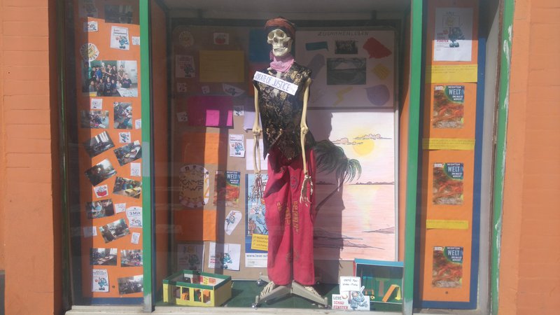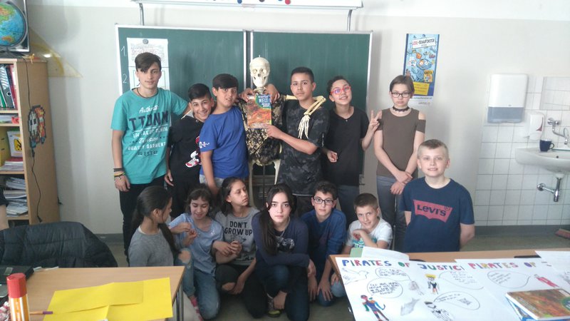 Wir entschlossen uns gemeinsam mit den SchülerInnen dieses Buch zu wählen, da die Themen sehr aktuell sind. Das Buch gliedert sich in drei große Bereiche: Umweltschutz, Müll, Gemeinschaft. Die SchülerInnen wollten beim gestalten des Leseschaufensters den Schwerpunkt auf das Thema Gemeinschaft legen. Was braucht man zum guten Zusammenleben- dieses wird in Schuhkartons sichtbar (Regeln, passende Umgebung,...). Was ist für mich Gerechtigkeit? Jedes Kind schrieb seinen Gedanken dazu in seiner Erstsprache, danach in deutscher und englischer Sprache. Der Pirat der Gerechtigkeit soll darüber wachen. Gemeinschaft findet auch im Fussballstadion statt. Die SchülerInnen hatten die Möglichkeit Begleitkinder bei einem Rapidmatch zu sein. Dieses findet mit Zitaten auch Platz auf einem Plakat im Leseschaufenster. Die SchülerInnen sind sehr stolz auf ihr Ergebnis und werden sicherlich an diesem Thema weiterarbeiten. Wir haben es sogar in die Zeitung geschafft www.kiku.at- Projektleitung: