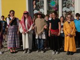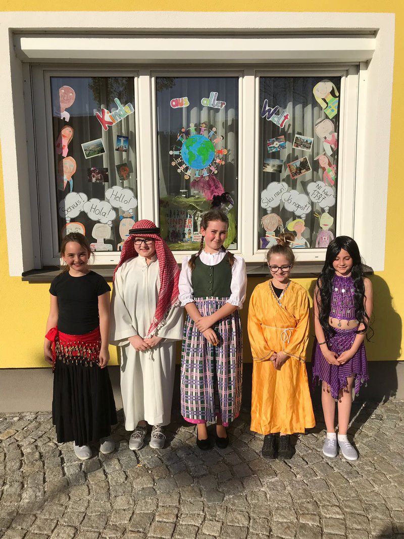 Die Kinder der VS Stotzing gestalteten ein Leseschaufenster zum Buch "Kinder aus aller Welt". Im Unterricht wurde das Buch gelesen und dazu wurden von den Kindern viele tolle Sachen gebastelt und auch Souveniers aus anderen Ländern gesammelt. Besonders spannend war das Kennenlernen anderer Kulturen, Speisen, Währungen und Sprachen. Aufgrund des großen Interesses an dem Thema entschlossen wir uns dazu, das Projekt im Rahmen einer kleinen Veranstaltung auch den Eltern, Großeltern und Freunden vorzustellen - mit großem Erfolg! Nach einem kurzen Begrüßungslied in unterschiedlichen Sprachen stellten sich einige Kinder, stellvertretend für die Kinder im Buch, in landestypischen Gewändern vor. Den Abschluss bildete ein schwungvolles Lied, in dem es um Gemeinschaft und Zusammenhalt in unserem "großen Haus" ging. Ein großer Dank gilt auch den Eltern jener Kinder, die uns mit typischen Köstlichkeiten aus ihren Herkunftsländern verwöhnten!