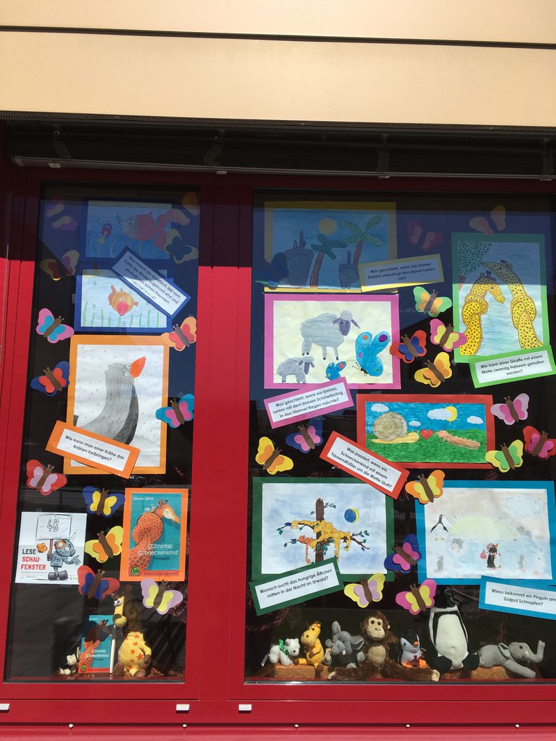 Die Kinder der 4B-Klasse nahmen mit großem Eifer am Leseprojekt „Leseschaufenster“ teil. In den Lesestunden wurde Renate Welshs Kinderbuch „Schnirkel Schneckenkind“ gemeinsam gelesen. Danach gestalteten die Schulkinder im Zeichenunterricht in Partnerarbeit Bilder zu den einzelnen Tierfabeln. Stolz präsentierten sie am Freitag, dem 20. 04., ihr Leseschaufenster.- Projektleitung: