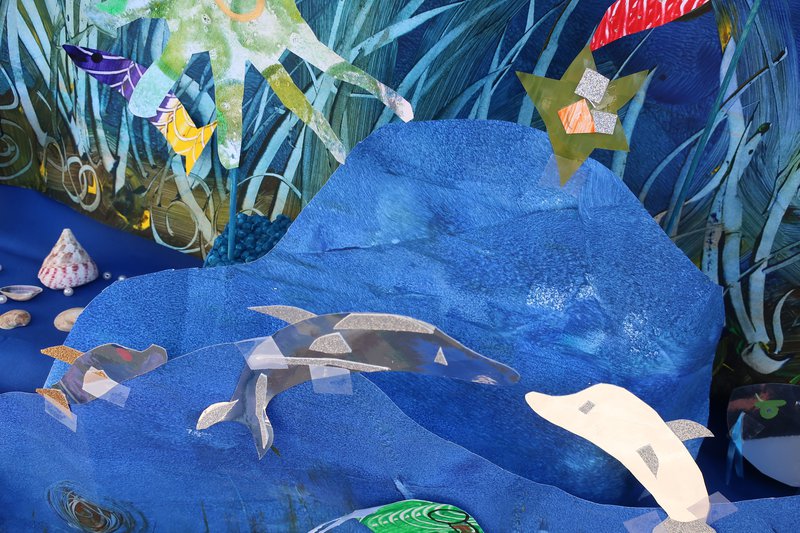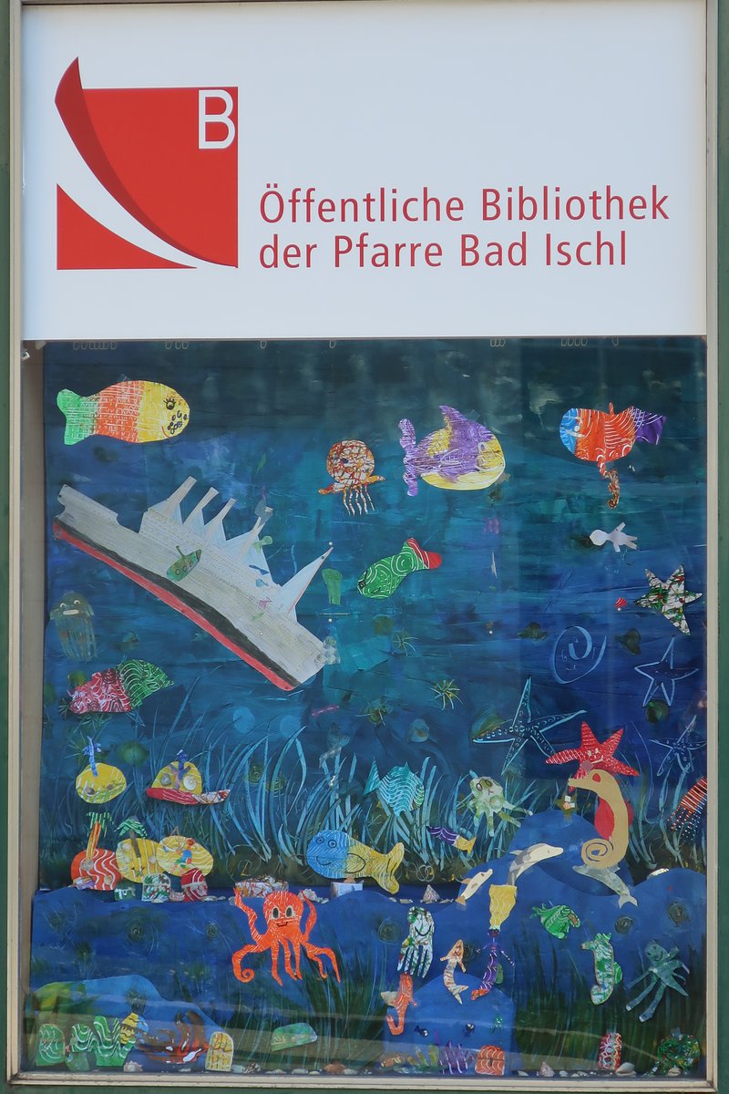 Kinder aus dem Hort Bad Ischl gestalteten mit Unterstützung von Elisabeth Gutenbrunner ein Lese-Schaufenster in der Bibliothek Bad Ischl. Inspiriert von Willy Puchners Buch "Fabelhaftes Meer" wurde aus dem Schaufenster der Bibliothek eine wunderbare und geheimnisvolle Meereslandschaft. Die Kinder stellten das im Schaufenster verwendete Papier unter Anwendung verschiedener Techniken (z.B. Monotypie mit Gelatineplatten, Murmeltechnik, ..) selbst her und fertigten daraus ihre Vorstellung vom Meer und seinen Bewohnern: In einer dreidimensional wirkenden Meereslandschaft sind u.a. phantastische Fische, Kraken und Seepferdchen zu sehen. Auch Meeresjungfrauen, versunkene Schatztruhen, Perlen und sogar das Wrack eines berühmten Schiffes kann entdeckt werden. Die Gestaltung des Schaufensters machte allen Beteiligten viel Spaß, die Kinder kommen nun gerne vorbei, um "ihr" Schaufenster zu besuchen und das Bibliotheksteam freut sich über diese besondere Form der Literaturvermittlung!- Projektleitung: