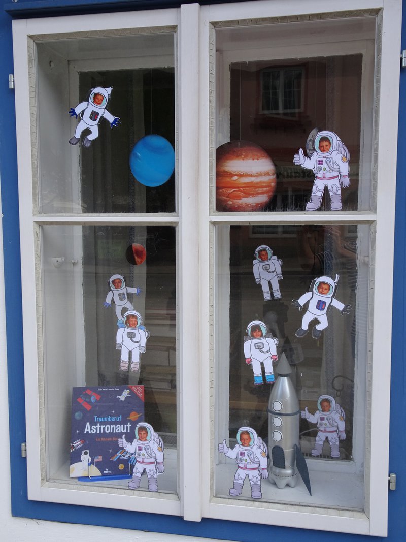 Faszination Weltraum! Angeregt durch die Lektüre stellten sich die Kinder der 3. Klasse die Frage: "Was wäre wenn... wir wirklich ins All reisen könnten, um die Planeten zu erforschen?" Unser Lesefenster gestattet uns einen Ausflug in die Unendlichkeit des Weltraums - ein Astronautentraining der anderen Art.- Projektleitung: