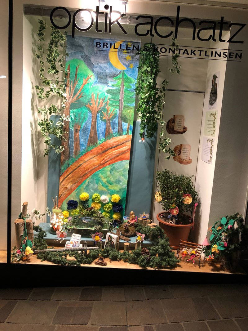 Die Schüler/Innen ( zwischen 10 und 15 Jahren ) der Nachmittagsbetreuung „Galileo“ der NMS-Fürstenfeld haben das Jugendbuch „Der Prinz der Elfen“ gelesen. Anschließend ist zum Buch ein kreatives Schaufenster gestaltet worden. Die Kinder haben vor und nach den Lernstunden gerne gearbeitet und ihre hervorragenden Ideen eingebracht, die den spannenden Inhalt wiedergeben. Seit Mitte April 2018 ist dieses Lese-Schaufenster bei Optik Achatz in Fürstenfeld zu bewundern.- Projektleitung: