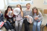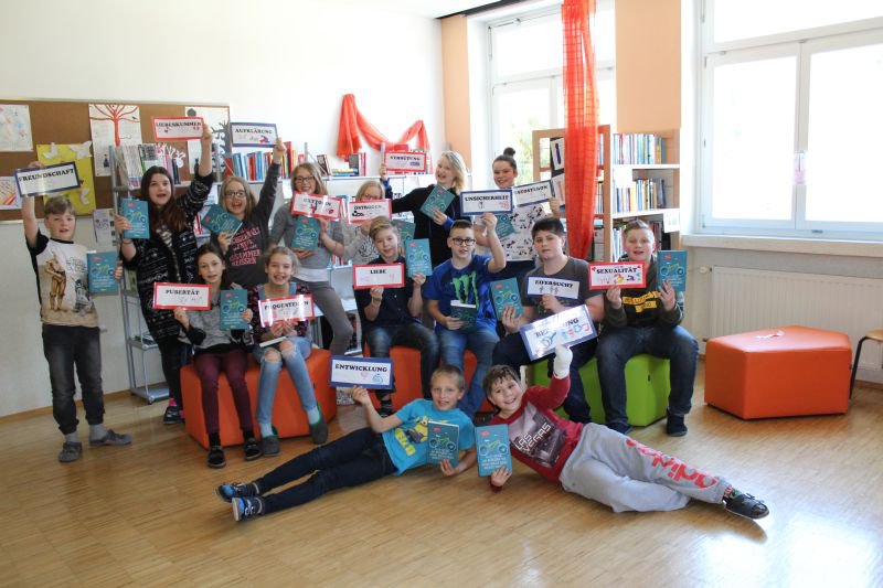Auch in St. Gallen konnte die äußerst unterhaltsame Geschichte von Pubertierenden, deren Eltern und Liebeskummer anschaulich und kreativ als Leseschaufenster gestaltet werden. Die Symbolkarten weisen auf die Themen hin, mit welchen sich die jungen Menschen in dieser Altersklasse intensiv beschäftigen und auseinandersetzen. Neben den Leseproben und der Präsentaion wurden die Gäste auch mit einstudierten Liedern verwöhnt.