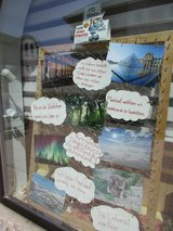 Bilderrahmen mit Reisezielen und Sprüchen aus dem Buch