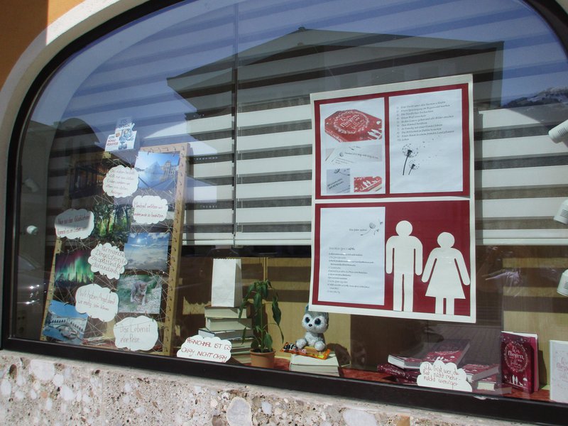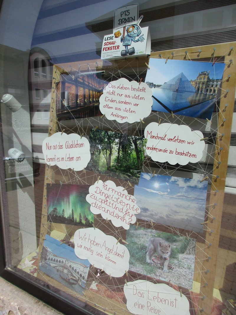 Das Buch wurde zunächst von allen Schülern in Deutsch als Klassenlektüre gelesen. Danach hat die wirtschaftliche Fachbereichsgruppe das Leseschaufenster gestaltet und in den Räumlichkeiten der Sparkasse im Ort präsentiert. Es wurden am PC Plakate gestaltet, Bilder gedruckt, Sprüche aus dem Buch handschriftlich verfasst und schließlich Gegenstände zum Inhalt passend gesammelt und zum Dekorieren verwendet. Dabei konnte das Gelernte zum Thema "Schaufenstergestaltung" gleich in die Praxis umgesetzt werden. Wir haben uns echt viel mit dem Buch, das inhaltlich wirklich alle Schüler angesprochen hat, beschäftigt.- Projektleitung: