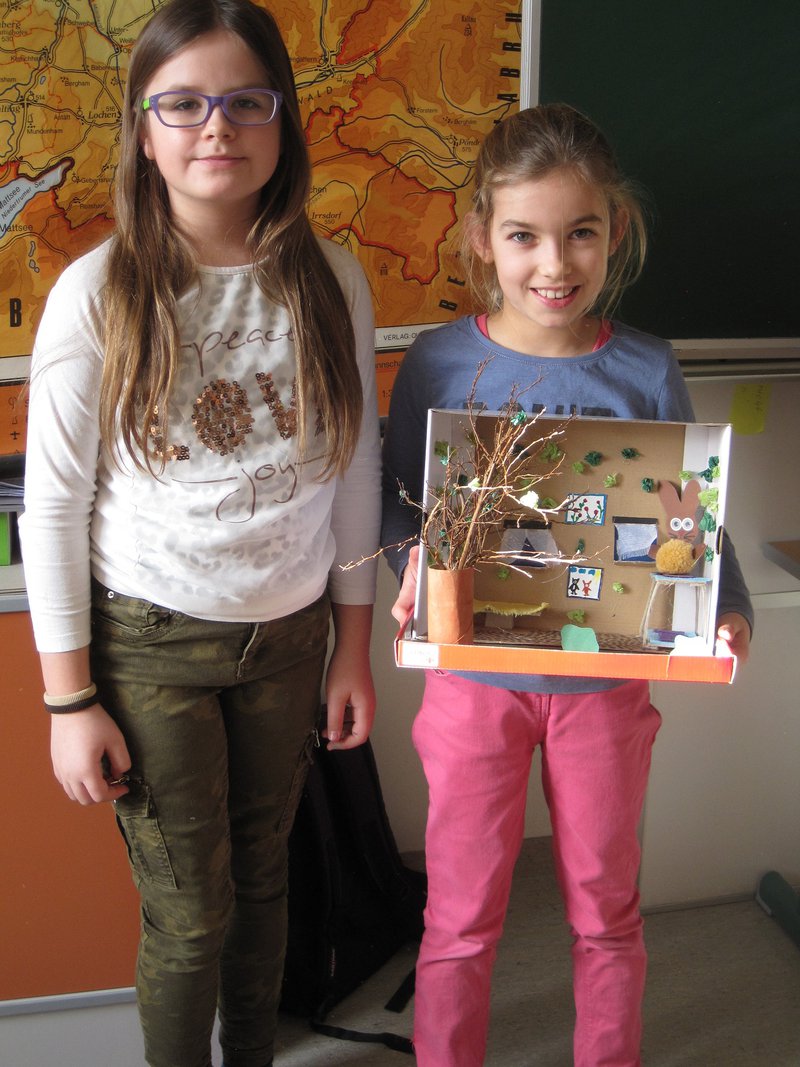 Julia u. Nora präsentieren stolz das "Kaninchen-Zimmer"