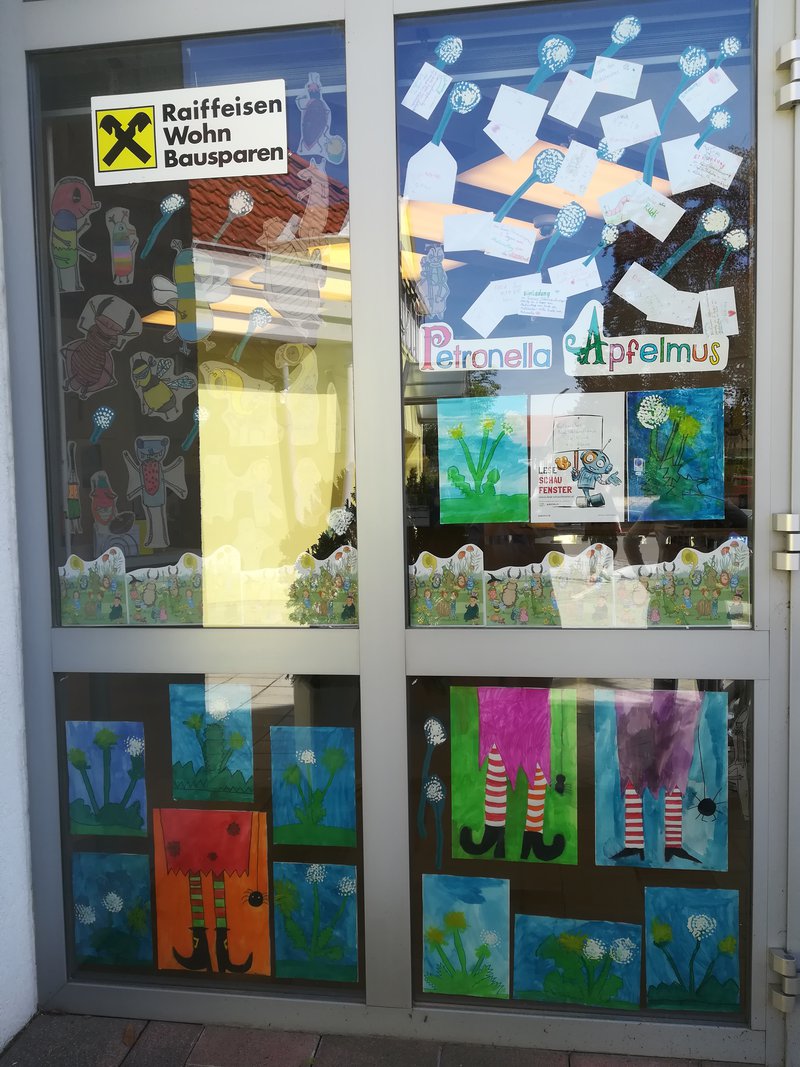 Die Schüler der 1a und der 4b erarbeiteten mit den Klassenleherinnen im Rahmen unseres Leseprojektes "Große lesen mit Kleinen" das Buch Petronella Apfelmus. Teilweise durch Vorlesen der 4. Klässler, der Klassenlehrerin und auch kurze Stücke werden von den 1. Klässlern gelesen. Bildnerisches Gestalten von Hexenbeinen, Käfern auf Transparentpapier, schirfliches Gestalten von Einladungen und Pusteblumen.