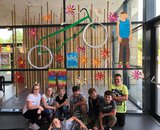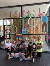 Ein wunderbares Jugendbuch, das meine Schüler mit großer Begeisterung gelesen haben und bei der Aufbereitung wunderbar motiviert und mit größtem Eifer dabei waren. Mächtig stolz waren sie auf ihre Bastelarbeiten für das Schaufenster in der ortsansässigen Therme, wo sie beim Dekorieren desselben von vielen Badegästen angesprochen wurden und eine äußerst positive Rückmeldung erhalten haben. Das 3D- Fahrrad mit "Mänteln" aus dem Sportgeschäft, die mit Frischhaltefolie überzogen wurden um dem Kondom- Titel gerecht zu werden, hat meine Erwartungen vollends übertroffen. Zudem fügt sich der übergroße Anton als Pappfigur perfekt in die Schaufenster- Szenerie ein. Die positive Stimmung des Buches sowie der spritzige Lesestil soll durch viele bunte Blumen rundherum zum Ausdruck gebracht werden.