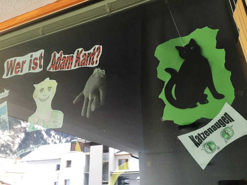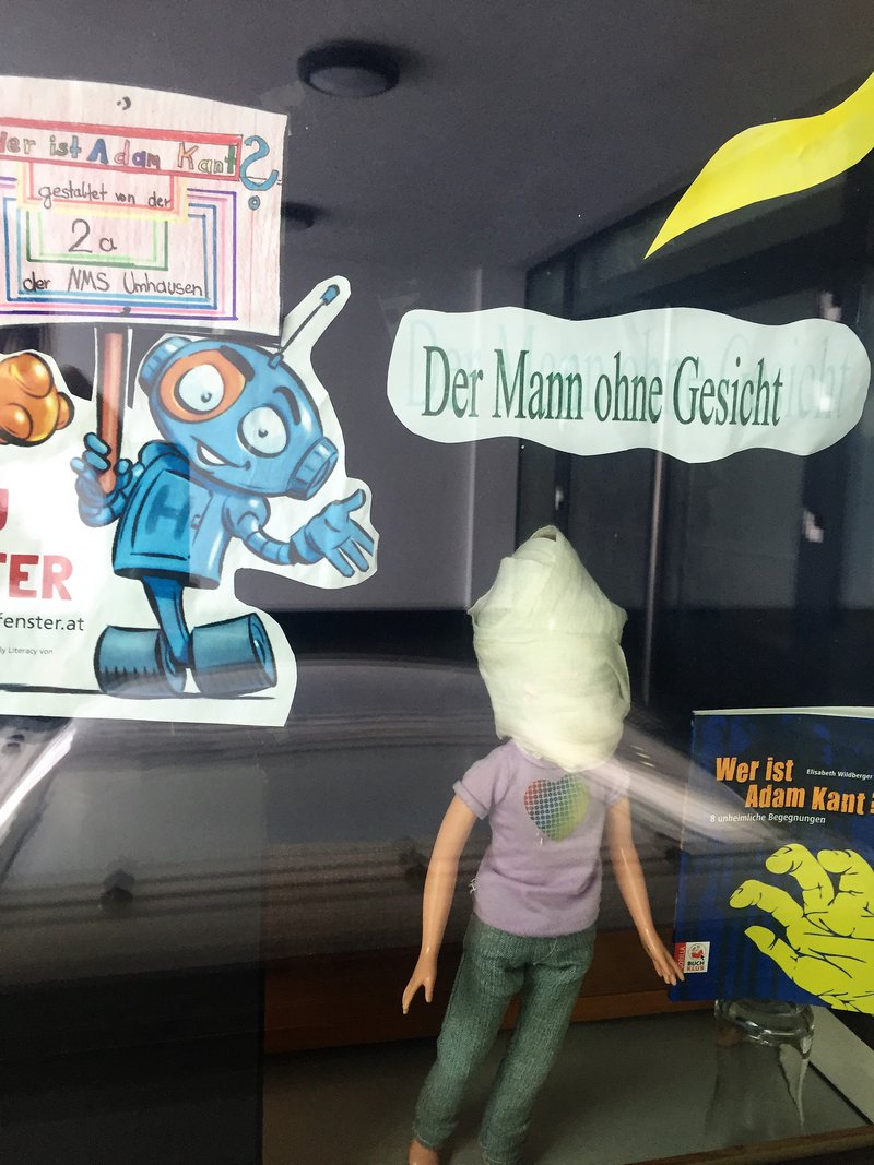 Wir haben das Buch "Wer ist Adam Kant" in ein umfassendes Leseprojekt eingebaut. Nur mit Hilfe des Buches konnten bestimmte Aufgaben bei unserem Projekt "Und dann waren es plötzlich... Alle" erfüllt werden. Nachdem wir das Buch gelesen hatten, haben wir uns überlegt, wie wir die einzelnen Kapitel am besten präsentieren - wie man sieht waren unsere Schüler sehr kreativ und haben fleißig gebastelt und gemalt und dann das Schaufenster gestaltet- Projektleitung: