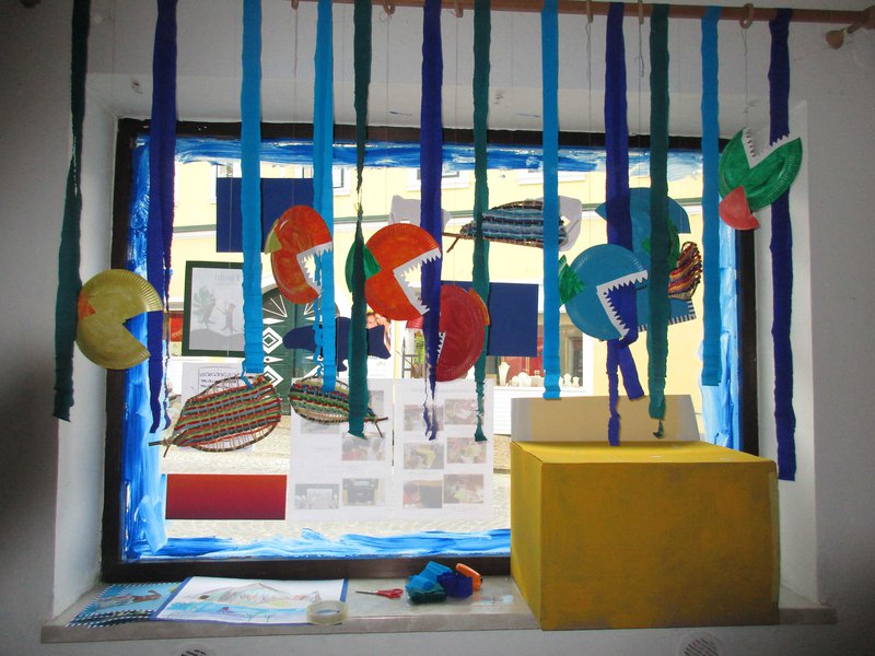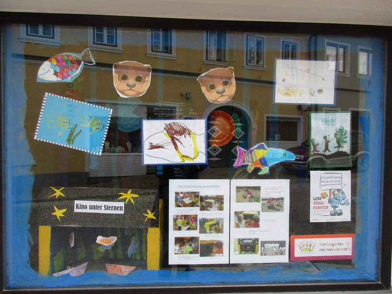 Das Buch "Fisch!" von Linda Wolfsgruber war auf Anhieb der Favorit im Kindergarten. Unter der Projektleitung von Katrin Wandl-Gedlicka würde das Buch nicht nur zum Lese-Schaufenster Projekt sondern auch zum Kindergartenprojekt. Das Bilderbuch wurde mit allen Sinnen erlebt. Es wurde lebendig gemacht durch sehen, (be)greifen und ausprobieren. Es wurde ein Schachtel Aquarium gebastelt, gezeichnet, gemalt, geklebt und gewebt. Es wird auch noch einen Kindergartenausflug ins Unterwasserreich geben, um die echten Fischotter und alles drum herum noch weiter zu erforschen. Die Kinder hatten große Freude am Lese-Schaufenster Projekt "Fisch!"