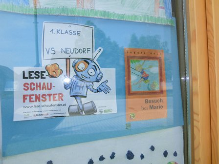 Im Rahmen der Leseschwerpunktes im heurigen Schuljahr lasen die Kinder der ersten Schulstufe eine der Buchempfehlungen des Buchklubs. Die Kinder der ersten Schulstufe der VS Neudorf befassten sich ausführlich im Leseunterricht mit dem Buch "Besuch bei Marie". Mit viel Begeisterung waren alle beim Lesen, Basteln, Malen und Dekorieren dabei und sind sehr stolz auf ihr fertiges Lesefenster!- Projektleitung: