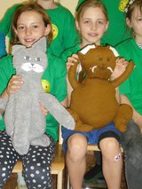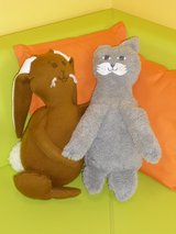 Leseclub: Leseschaufenster: Zwei im Baumhaus: Beschreibung Alles begann im Leseclub der VS Göllersdorf. Wir hörten von der Aktion „Leseschaufenster“ d. Buchklubs. Sofort verschlangen wir Leseratten alle vorgeschlagenen Bücher. Infolge bastelten wir unzählige, recht kunstvolle Schuhschachtel-Schaufenster. Im Fokus war das Buch „Zwei im Baumhaus“ von Käthe Recheis. Eine wundervolle Geschichte über eine besondere Freundschaft zwischen einer Katze und einem Kaninchen. Wir waren fasziniert. Deshalb wurde mehr daraus. Es entstanden ein Lesetheater und ein toller Song (Text von den Kindern, Melodie angelehnt an einen bekannten Schlager). Ein Highlight waren auch die zwei selbst entworfenen und genähten Stofftiere (Katze & Kaninchen). All das wurde bei der Eröffnung des Lese-Schaufensters im Friseursalon Stolz präsentiert. Wir waren mit viel Einsatz, Freude und Kreativität dabei. DANKE Buchklub!- Projektleitung: