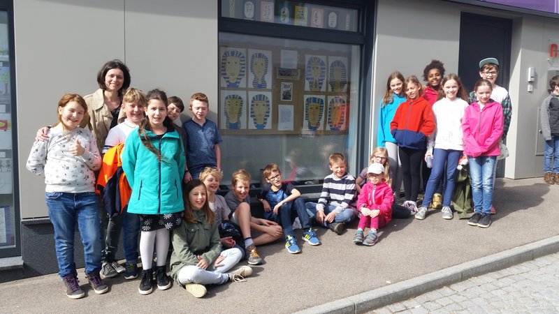 Das Buch wurde nach Anzahl der Kinder in Abschnitte geteilt und in der Klasse von den Kindern vorgelesen. Gleichzeitig haben wir uns mit unserer Klassenlehrerin Doris Ehemoser im Unterricht ausführlich mit dem Thema Ägypten beschäftigt und Informationen gesammelt. Im Zeichnen und Werken entstanden dann die Ausstellungsstücke für unser Leseschaufenster.- Projektleitung: