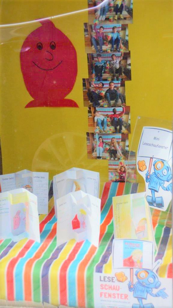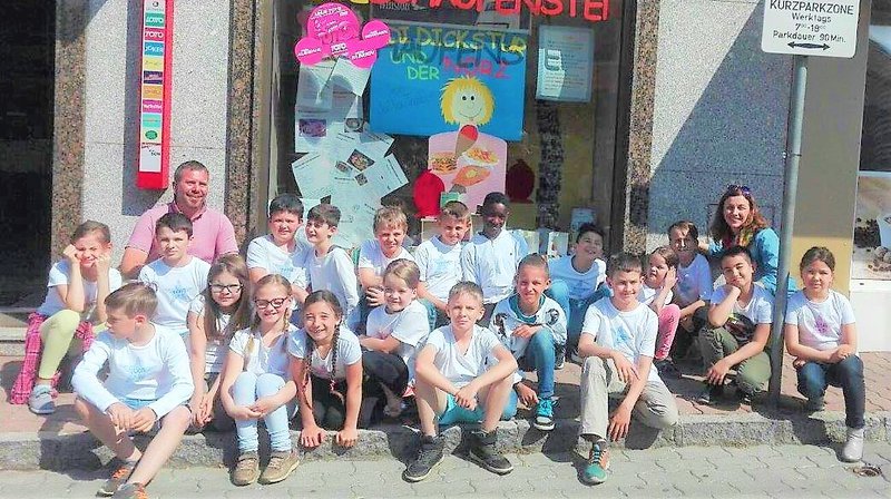 Dass das Leben verdammt schwer ist, wenn man Edi Dickstur heißt, war für die Kinder der 4.b Klasse in Zeltweg sofort klar, als sie sich für dieses interessant klingende Buch entschieden. Ist Edi nun so dick wie stur? Oder so stur wie dick? Und bitte wer oder was ist ein Norz? Sofort war die Begeisterung groß, dieses Buch von Jutta Treiber zu lesen. Das "unkochbare Kochbuch" mit gesunden Rezepten von Edis Mama war Anlass, selbst Rezepte zu sammeln, die gesund sind und lecker schmecken. So entstand unser "kochbares Kochbuch", das wir im Leseschaufenster auch ausstellten. Bevor wir uns ans große Leseschaufenster wagten, gestalteten die Kinder Mini-Schaufenster, die dann im großen nicht fehlen durften. Die Themen Gesunde Ernährung, Mobbing und Zusammenhalt boten viele Gesprächsanlässe und Aktivitäten. Am 23.4. präsentierten wir vielen Eltern, Schulkollegen und Passanten unser Leseschaufenster mit dem "Gesundheits-Rock" und kurzen Erklärungen zum Inhalt des Buches und der Gestaltung- Projektleitung: