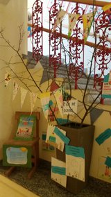 Im Rahmen der Kooperation zwischen Kindergarten und Volksschule wurde an diesem Projekt gearbeitet. Das Buch wurde im Leseland der Volksschule vorgelesen und im Anschluss wurde gemeinsam mit den Kindern besprochen, wie wir das Buch präsentieren können. Jedes Kind gestaltete eine Einladung zu einem ganz persönlichen Fest und auch der "Baum" aus der Geschichte wurde nachgebaut. Der Abschluss des Projektes wird freilich ein Fest mit allem Drum und Dran sein!