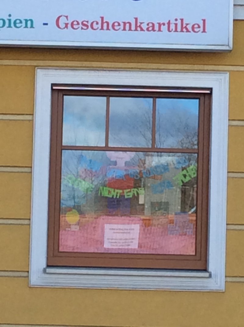 Diese SchülerInnen wollten unbedingt wissen, was sich hinter so einem Buchtitel versteckt. Sie gestalteten "Ihr Schaufenster" unter anderem mit einer Puppe aus Karton.- Projektleitung: