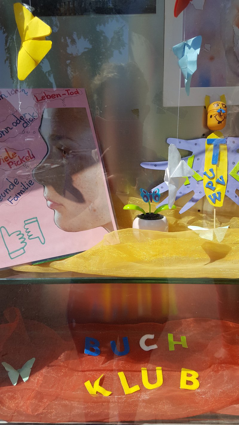 Im Rahmen der diesjährigen Buchklubaktion "Leseschaufenster" gestalteten einige Schülerinnen der 3ab Klasse und 4a wiederum eine Auslage im Orban Museum in Gamlitz. Die beiden Mädchen der 3b Klasse wurden dabei von den beiden Integrationsschülern und deren Betreuerinnen sowie einer Schülerin der 4a Klasse unterstützt. Diese fertigten Zeichnungen und Bastelarbeiten an. Gemeinsam wurde dann das Schaufenster gestaltet. Die Ausstellung ist für die örtliche Bevölkerung und für die zahlreichen Touristen noch zu bewundern.