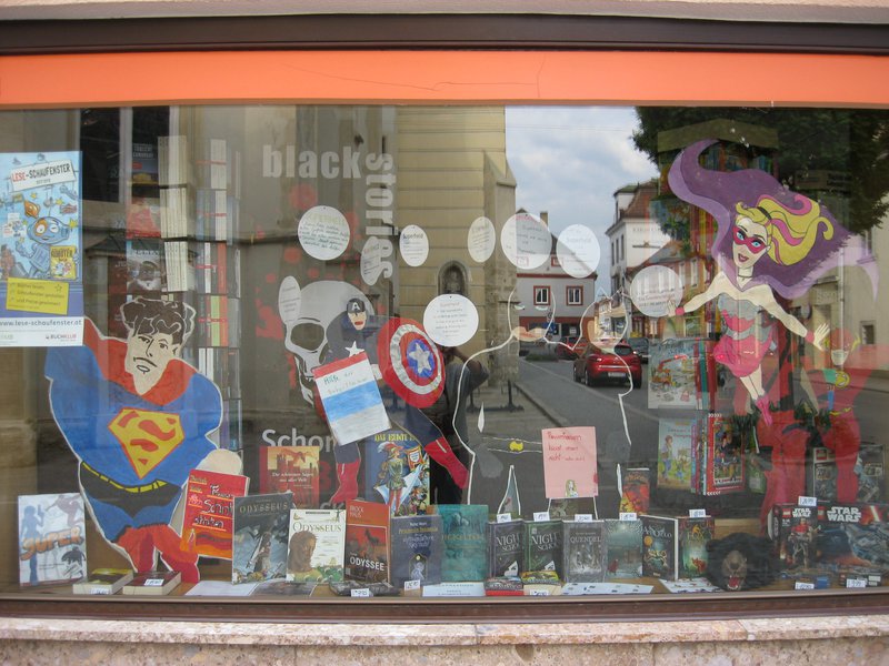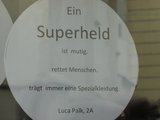 Thema: "Superhelden - von Odysseus bis Lara Croft"/ Deutsch Literaturvermittlung (Antike Sagen bis Comics und Grafic novels) und Bildnerische Erziehung.(großformatige Zeichnungen von Superhelden/innen mit widersprüchlichen Buchtiteln, z. B. Superman - mutig, hält ein Buch über Angstbewältgung in Händen) Fragestellung: Was ist ein Superheld? Recherche zum Thema: Superhelden/Superheldinnen - einst und jetzt; Steckbriefe verfassen; Lesen von Sagen, Textstellen aus den im Crossover voreschlagenen Büchern, z. B. Tribute von Panem, Percy Jackson; Gespräch und Beispiele über Vermarktung (z. B. Star Wars usw. ) Abschließend Gestaltung- Projektleitung: