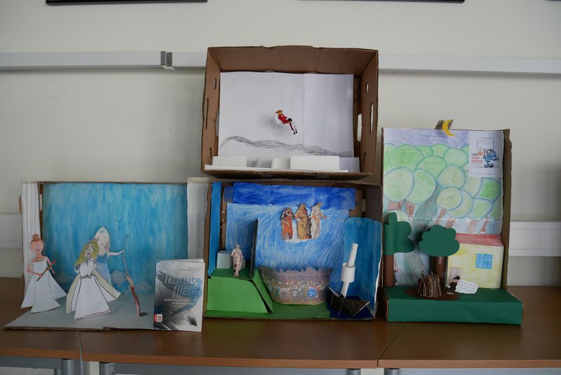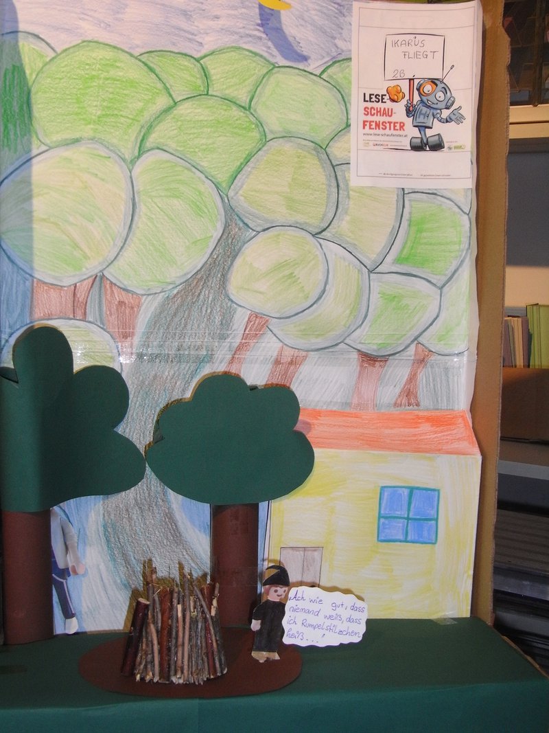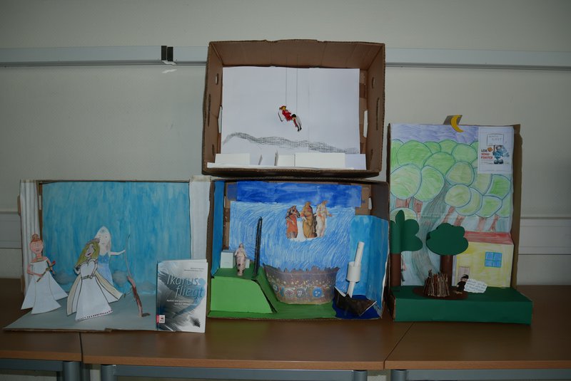 Die Schülerinnen und Schüler beschäftigten sich vor allem mit den Mythen und Märchen. Sie schrieben diese teilweise neu oder erzählten sie anders weiter. Zum Gestalten eines Lese-Schaufensters wurden sie besonders durch das "Urteil des Paris", "Dädalus und Ikarus" und das Märchen "Rumpelstilzchen" inspiriert. Das Schaufenster wurde sowohl in der Schule als auch in der Buchhandlung Linke gezeigt.- Projektleitung: