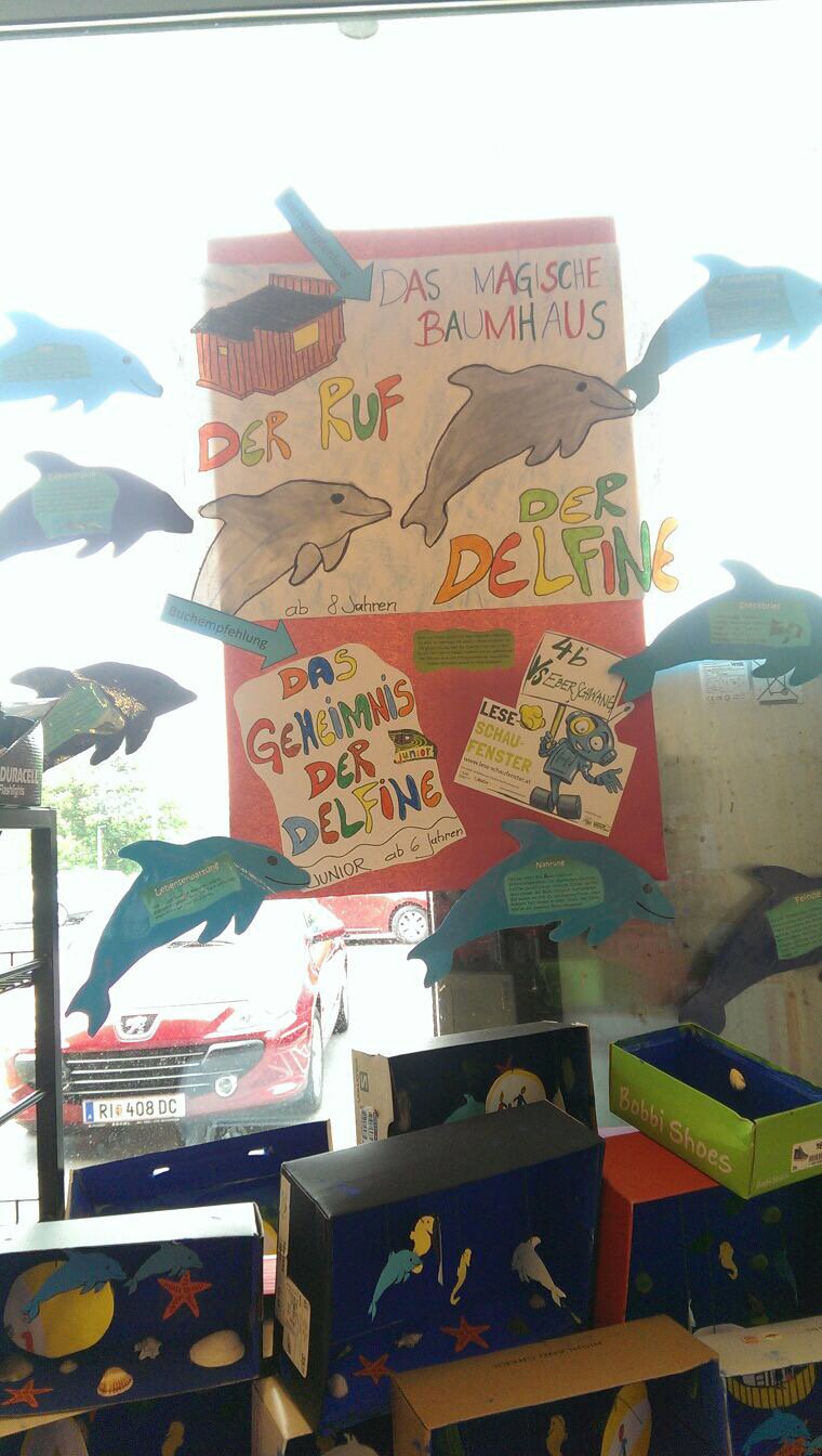Das Buch wurde mit großer Freude selbständig gelesen. Wir konnten sogar differenzieren, da die Reihe "Das magische Baumhaus" die Bücher "Das Geheimnis der Delfine" (JUNIOR, vereinfachte Form) und "Der Ruf der Delfine" anbietet. Während unserer Bastelstunden für die Schaufenstergestaltung hörten wir auch noch die Hör-CD! Im Anschluss daran, lernten wir Interessantes über Delfine und durften zum Abschluss einen kurzen Film anschauen. Ein gelungenes Projekt!- Projektleitung: