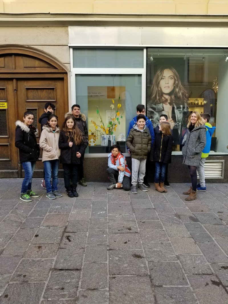 Die Gruppe vor ihrem Schaufenster.