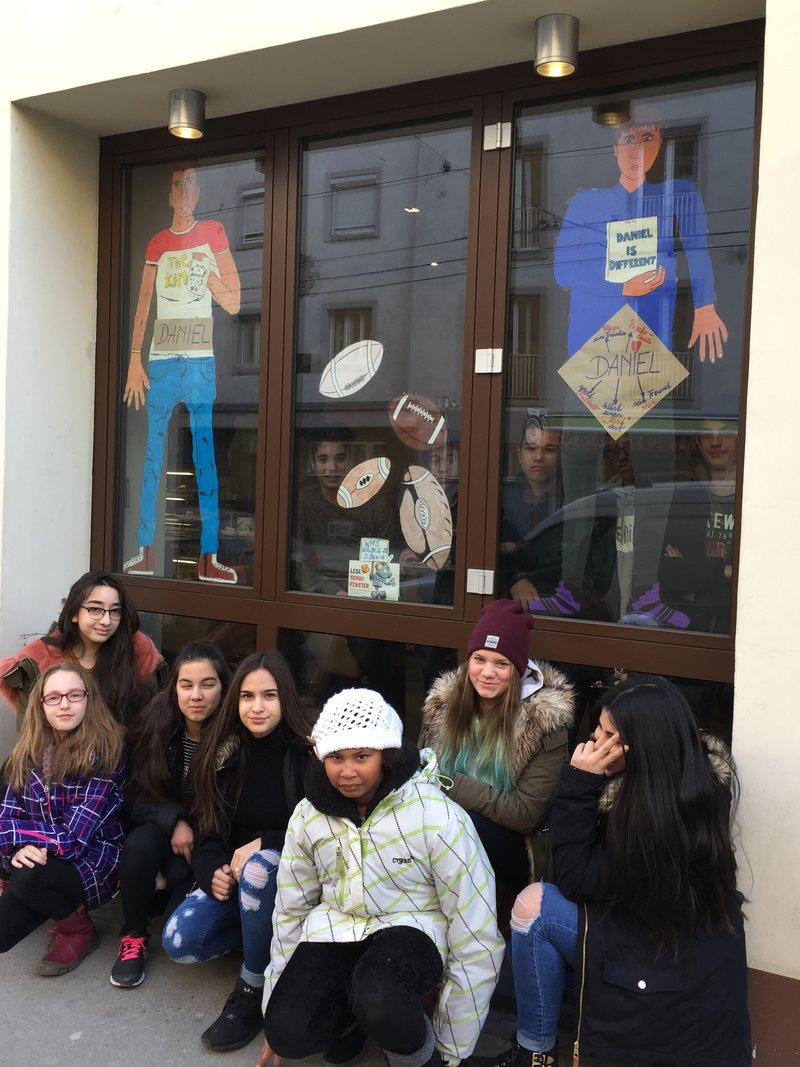 Den Schülern hat das Buch sehr gut gefallen und die Ausarbeitung der Plakate im Unterrichtsgegenstand "Kreatives Gestalten" zugesagt. Wir haben unsere Plakate mit einer kurzen Beschreibung des Buches vor ca. 1 Woche im Mokador ausgehängt. Für die Schüler war dies eine andere Form des Lesens. Auch für die Gäste im Mokador stellt diese Art der Präsentation eine völlig neue Erfahrung in ihrem Alltag dar. Sollte es nächstes Jahr wieder ein derartiges Projekt geben, würden wir gerne daran teilnehmen.- Projektleitung: