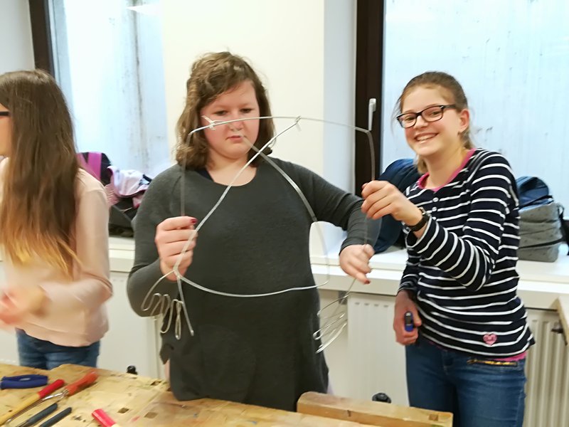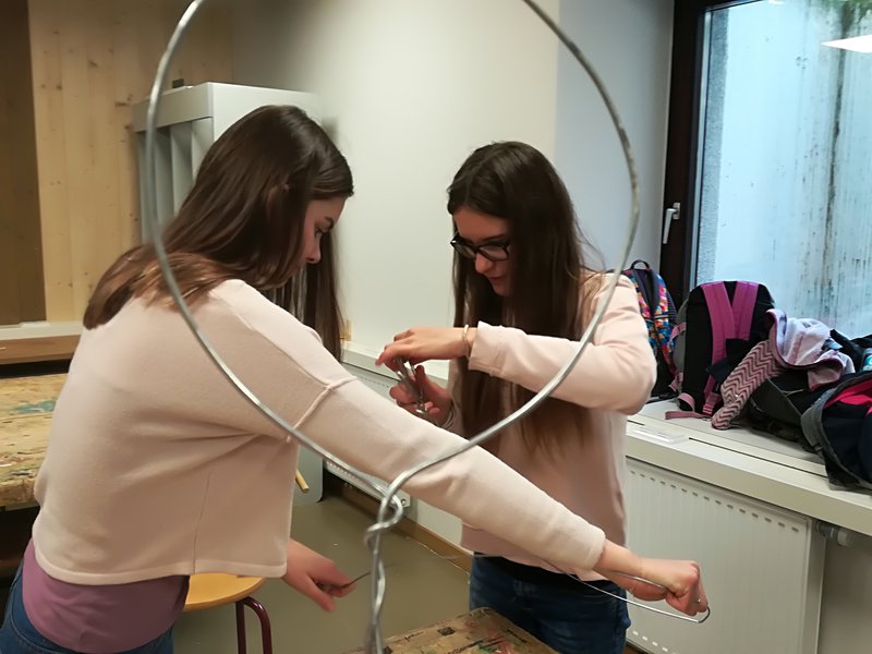 Wir haben dieses Buch gewählt, weil es ein guter Lesestoff für die vierte Klasse ist. Unser Schwerpunkt waren die Liebesgedichte. Und passend dazu haben wir ein Pärchen aus Draht gestaltet, das diese Lektüre genießt. Es war viel Arbeit, aber es hat uns allen sehr viel Spaß gemacht.- Projektleitung: