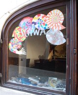 SchülerInnen vor ihrem Schaufenster